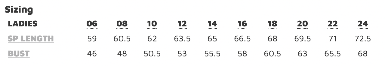 • Sizing Details